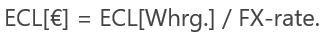 Um den ECL im Falle von Fremdwährungsgeschäften einheitlich in Euro darzustellen, ist ggf. eine Umrechnung zum jeweils gültigen Wechselkurs (FX-rate) notwendig: