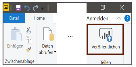 Abbildung 19: Power BI Desktop Menü mit hervorgehobener Schaltfläche zur Veröffentlichung des Berichts im Power BI Webservice. Quelle: MS PowerBI.