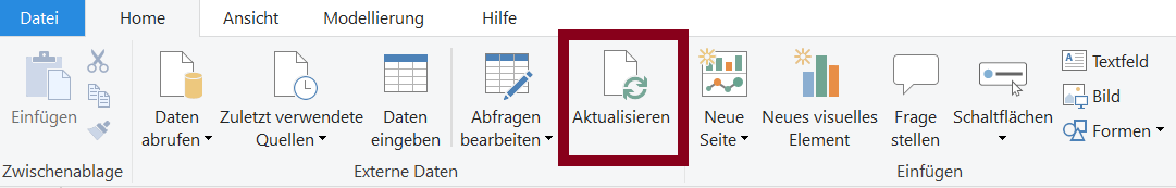 Abbildung 18: Power BI Desktop Menü mit hervorgehobener Schaltfläche "Aktualisieren". Quelle: MS PowerBI.